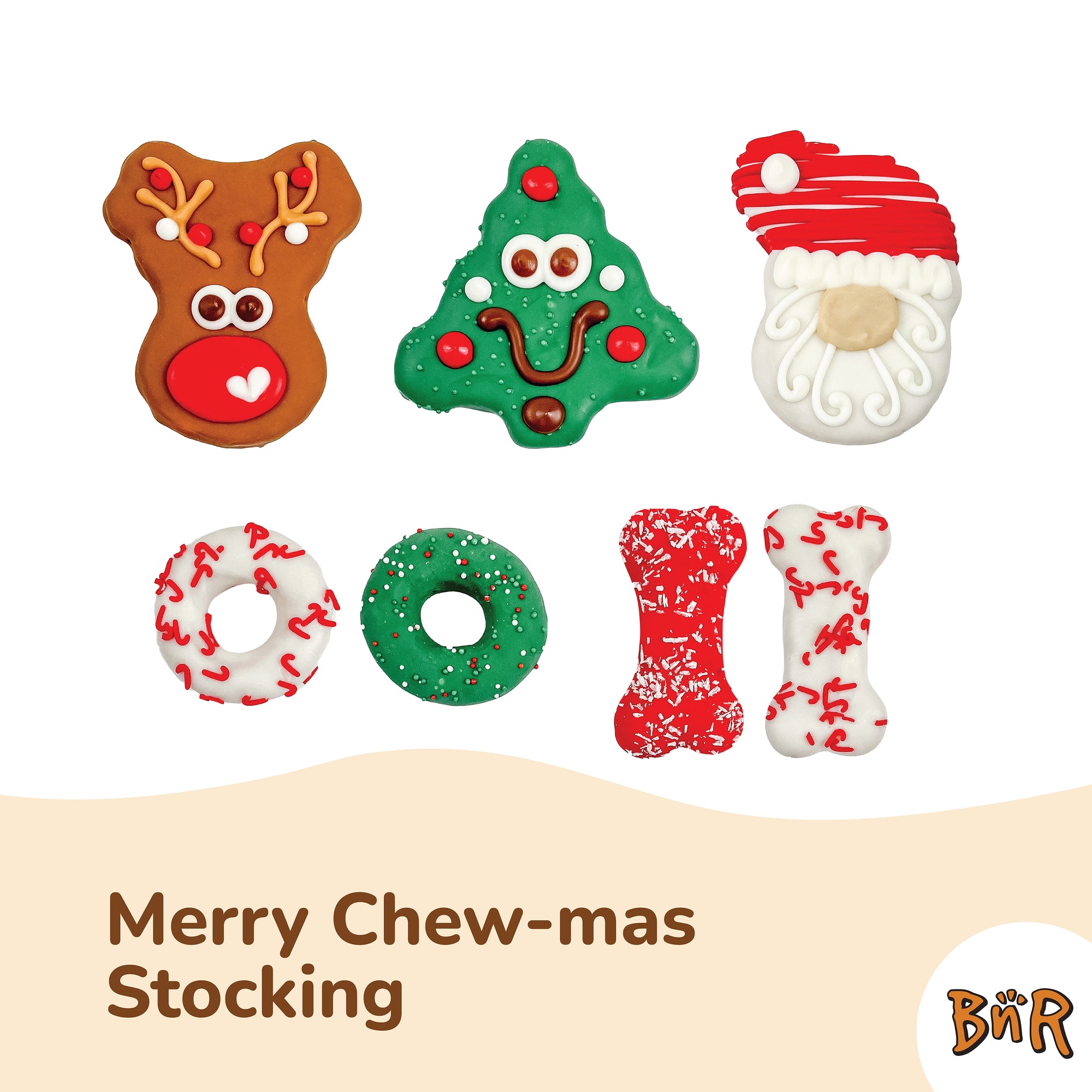 Reindeer Ingredients: Whole Wheat Flour, Applesauce (Preserved with Ascorbic Acid), Sugar, Spelt Flour, Vegetable Oil, Hydrogenated Palm Kernel Oil, Vital Wheat Gluten, Oat Hulls, Flaxseed Meal, Honey, Cinnamon, Psyllium Seed Husk, FD&C Red No. 40, FD&C Blue No. 1, FD&C Blue No. 2, FD&C Yellow No. 5, Natural Peppermint Flavour, Peanuts, Soy Lecithin, Vanilla, Dried Whey, Coconut
